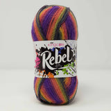 Introducing Rebel 4Ply, the newest member of the Riot DK & Riot Chunky lineup. Get ready to add some edge and creativity to your knitting with its eye-catching self-striping hues. Made of a top-notch blend of 75% Superwash Wool and 25% Nylon, Rebel 4Ply is perfect for socks, shawls, and trendy pieces that need both flair and durability.